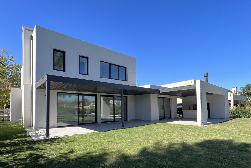 Esta moderna residencia en construcción se destaca por su diseño contemporáneo y líneas limpias, con una estructura de dos plantas y grandes ventanales que permiten abundante entrada de luz natural. La fachada combina tonos claros con detalles oscuros, creando un contraste elegante y una estética minimalista. Además, el amplio espacio exterior contempla una futura piscina, […]